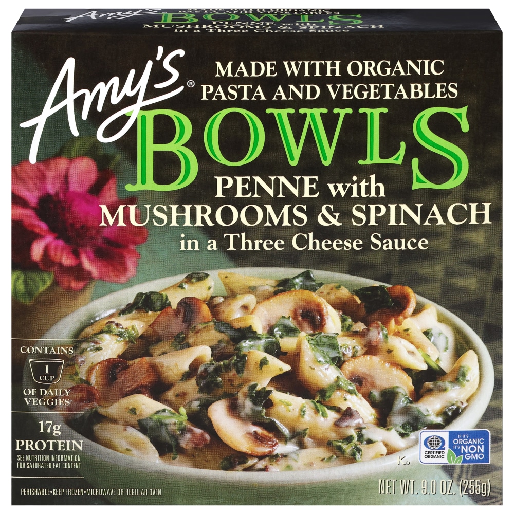 Amy's Kitchen Organic, Vegetarian Mushroom Spinach Penne Bowl Frozen Meal