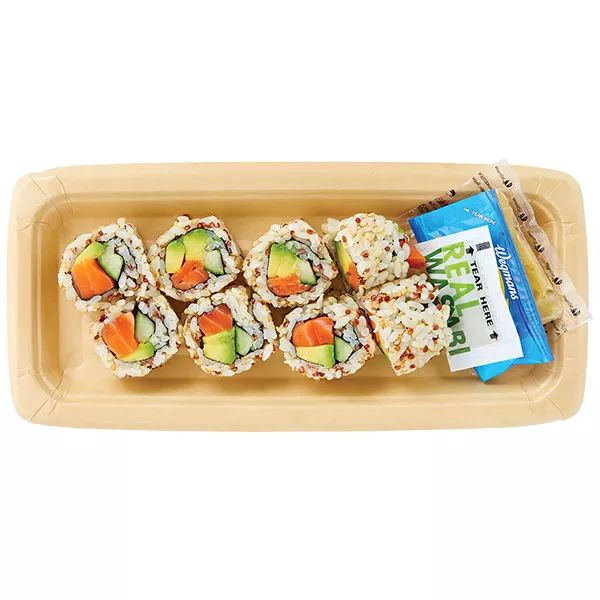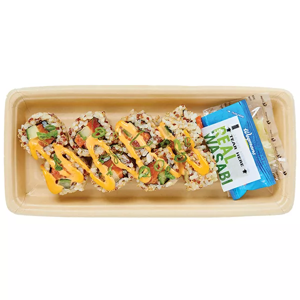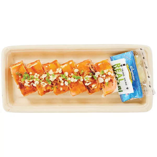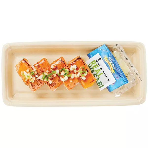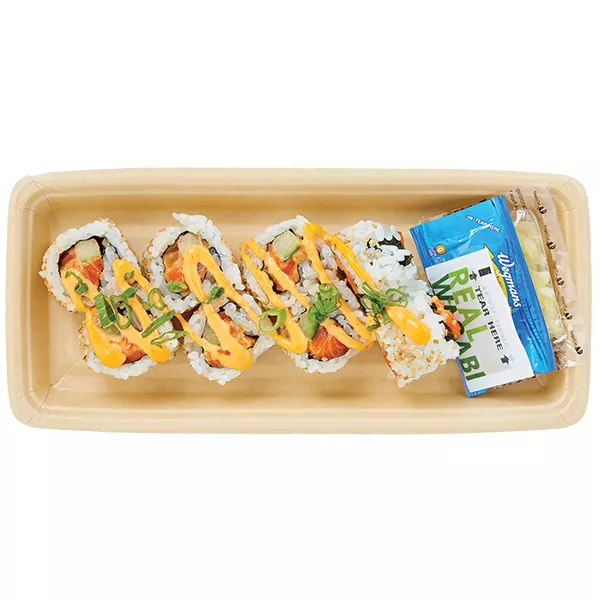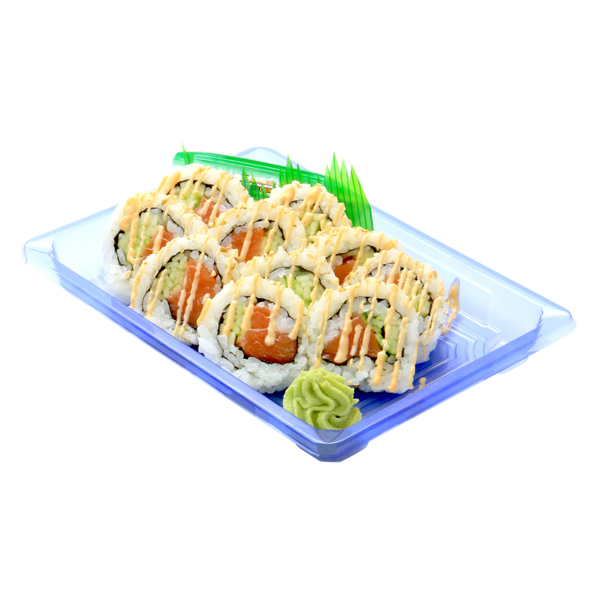 - - *MADE WITH NO GLUTEN-CONTAINING INGREDIENTS - - Keep Refrigerated. - - Ingredients: Salmon (color added to feed), Water, Rice, Avocado, Cucumber, Mayonnaise (Soybean Oil, Water, Salted Egg Yolks [Egg Yolk, Salt], Sugar, Distilled Vinegar, Salt, Lemon Juice Concentrate, Xanthan Gum, Egg Powder, Paprika Oleoresin [for color]), Sugar, Modified Starch (Corn, Potato), Jalapeno, Sriracha Sauce (Jalapenos, Water, Sugar, Salt, Distilled Vinegar, Garlic, Garlic Powder, Xanthan Gum, Citric Acid, Paprika Oleoresin [for color]), Gluten Free Soy Sauce (Water, Soybeans, Rice, Salt), Chili Soy Crepe (Soy Protein, Egg White, Glycerin, Chili Pepper, Whole Eggs), Scallions, Salt, Rice Bran Oil, Shallots, Rice Vinegar, Soybean Oil, Distilled Vinegar, Rice Flour, Corn Flour, Salted Sake (Salted Rice Wine, Water, Rice, Salt), Glucono Delta Lactone, Garlic Puree (Garlic, Citric Acid), Agave, Lemon Juice Concentrate, Baking Powder (Baking Soda, Sodium Acid Pyrophosphate, Tapioca Starch), Garlic, Garlic Powder, Sesame Oil, Caramel Color, Xanthan Gum, Ginger Powder, Spice, Natural Flavor, Yeast Extract, Lactic Acid, Citric Acid, Paprika Oleoresin. Also Contains: Gluten Free Soy Sauce, Wasabi and Ginger. CAUTION: May Contain Bone Fragments.
