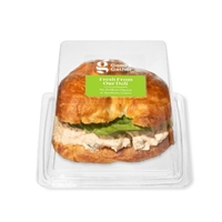 Ingredients: Tarragon Chicken Salad (Rotisserie Chicken Breast [Chicken Breast Meat, Water, Seasoning {Salt, Modified Potato Starch, Potato Dextrin, Carrageenan, Sugar, Dextrose, Spice Extractives}], Tarragon Sauce [Mayonnaise {Expeller Pressed Canola Oil, Egg Yolks, Water, Honey, Distilled and Cider Vinegar, Whole Egg, Salt, Spice, Lemon Juice Concentrate, Soybean Oil, Sugar, Lemon Juice, Natural Flavors, Oleoresin Paprika and Calcium Disodium EDTA (added to protect flavor)}, Light Cream, Green Onion, Tarragon, Roasted Garlic {Roasted Garlic, Citric Acid, Expeller Pressed non-GMO Canola Oil, Salt, Spices}, Celery Salt {Salt, Celery Seed}, Soy Lecithin, Lemon Juice Concentrate, Sea Salt, Black Pepper, Xanthan Gum, Nisin Preparation, Kosher Salt]), Croissant (Enriched Wheat Flour [Wheat Flour, Malted Barley Flour, Niacin, Reduced Iron, Thiamine Mononitrate, Riboflavin, Folic Acid], Butter, Water, Whole Milk, Sugar, Eggs, Yeast, Salt, Ascorbic Acid, Plant Enzymes, Citric Acid, Vital Wheat Gluten, Xanthan Gum, Deactivated Yeast), Tarragon Sauce (Mayonnaise [Expeller Pressed Canola Oil, Egg Yolks, Water, Honey, Distilled Vinegar, Whole Egg, Salt, Spice, Lemon Juice Concentrate], Light Cream, Green Onion, Tarragon, Roasted Garlic Puree [Roasted Garlic, Citric Acid], Celery Salt, Soy Lecithin, Lemon Juice Concentrate, Sea Salt, Black Pepper, Xanthan Gum, Nisin Preparation), Green Leaf Lettuce, Sea Salt Flakes, Black Pepper.