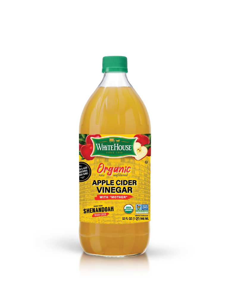 White House Organic Apple Cider Vinegar, Raw and Unfiltered, 32 Fl. Oz.: Helps you create flavorful dishes and beverages White House Organic Apple Cider Vinegar has been trusted by families since 1908 Made from all-natural apples and crystal-clear water Includes a naturally occurring compound called "the mother" Has a pickling and table strength of 5% acidity Use White House organic vinegar to enhance dressings, sauces and more Commonly used by dieters and as a healthful remedy White House Organic Apple Cider Vinegar, Raw and Unfiltered, 32 Fl. Oz.: Helps you create flavorful dishes and beverages White House Organic Apple Cider Vinegar has been trusted by families since 1908 Made from all-natural apples and crystal-clear water Includes a naturally occurring compound called "the mother" Has a pickling and table strength of 5% acidity Use White House organic vinegar to enhance dressings, sauces and more Commonly used by dieters and as a healthful remedy Non-GMO project verified www.nongmoproject.org