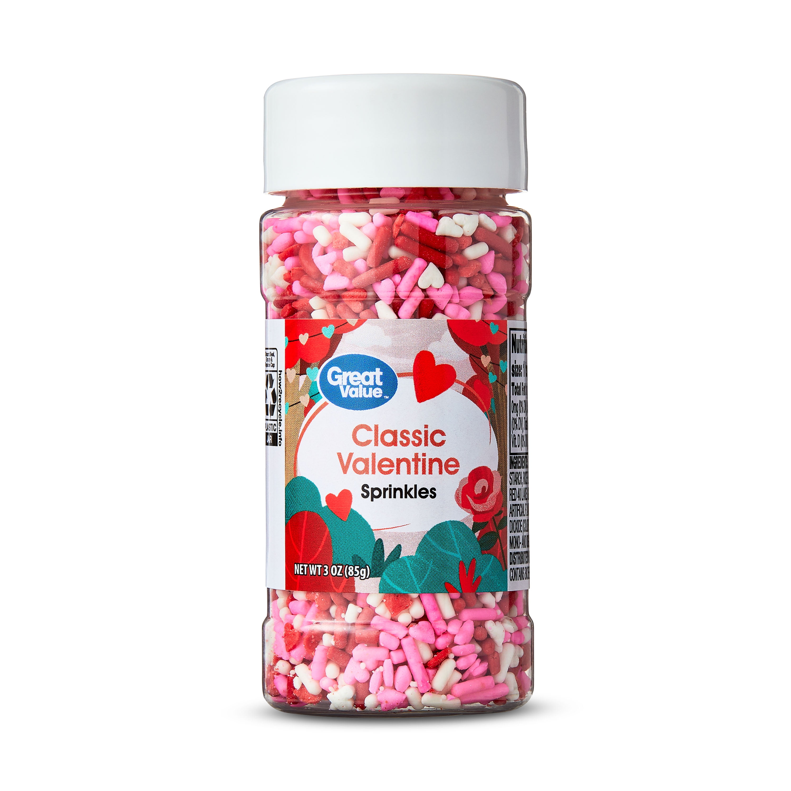 Top cupcakes, cookies, cakes and other treats with these fun Valentine's Day sprinkles. Includes 6 sprinkles: nonpareils, confetti sprinkles, hearts, jimmies, and 2 sanding sugars.