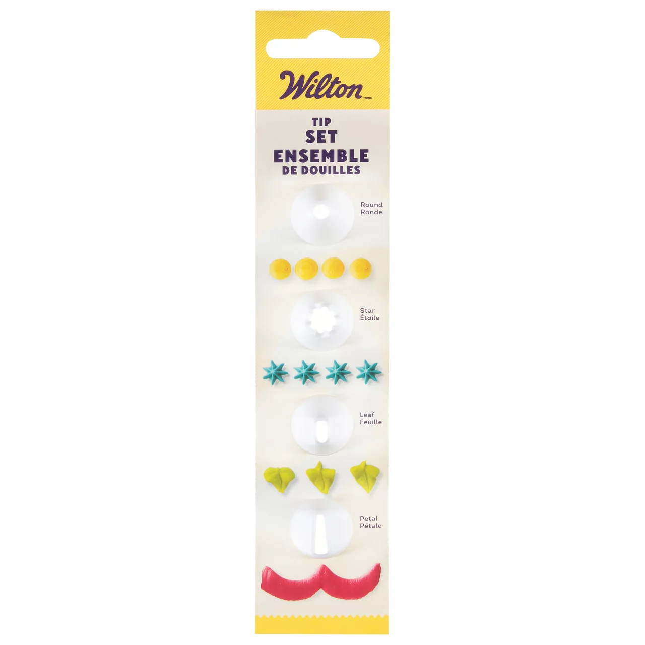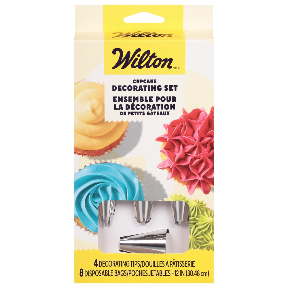 Want to ease your way into decorating cakes, cookies and cupcakes? Grab this set that includes a standard coupler, Round tip 3, Open Star tip 18 and Petal tip 104. You'll be able to start piping dots, lines, rosettes, stars, shells, borders and more in no time. Use with our disposable decorating bags or Wilton icing pouches.