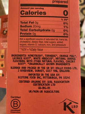 Contains: Does Not Contain Any of the 9 Major AllergensFeatures: No Artificial Colors, No Artificial SweetenersDietary Needs: Organic Certified, Kosher, Vegan, Non-GMO Project VerifiedTea Type: Non-CaffeinatedPackage Quantity: 16Net weight: 1.12 OuncesStyle: Herbal Tea