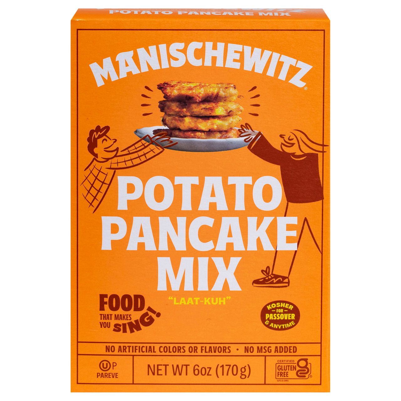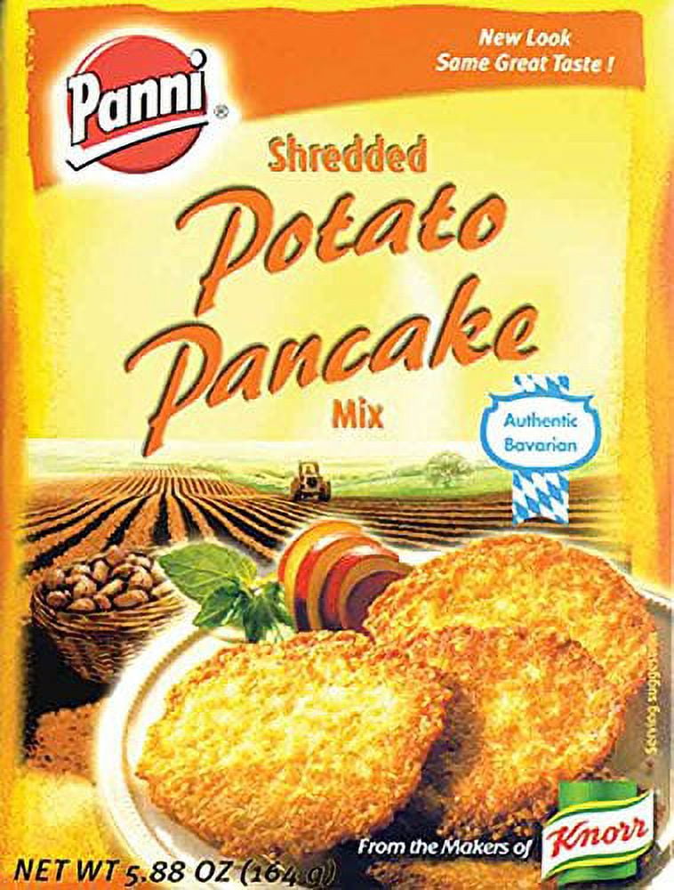 Named for its primary ingredient, potato pancake mix is an all-in-one solution to making these compact, satisfying treats. Quick and easy to prepare, this dry mix contains potatoes in dehydrated form, along with flavor enhancers and binding agents. Simply add a liquid of your choice, pour dollops of batter in a hot pan, and enjoy pancakes with a crisp outside and a soft, steamy interior in mere minutes.