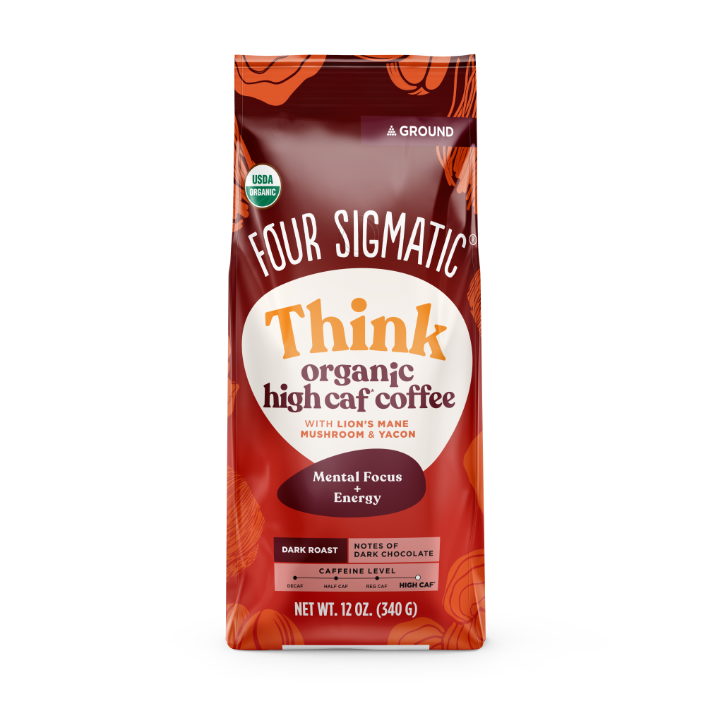 Four Sigmatic Think Coffee, Organic, with Lion's Mane Mushroom & Yacon, High Caf, Dark Roast