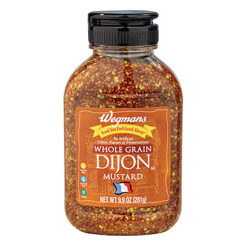Whole Grain Dijon Mustard, a culinary delight that derives its rich, robust flavor from a blend of brown and white mustard seeds. As biting as it is tangy, this mustard variant is distinguished by its granular texture, making it a delightful addition to your pantry staples. Mellow yet spicy, its complex taste enhances everything from sandwiches to marinades.