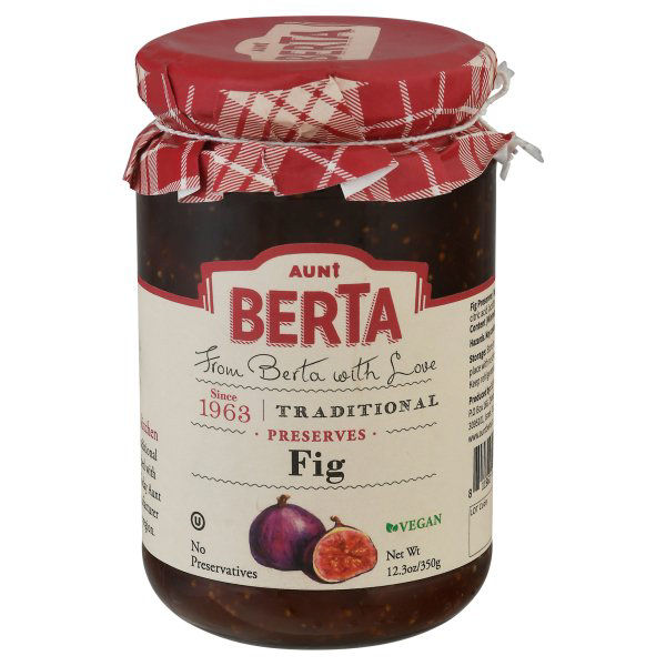 Fig preserves are a sweet and versatile condiment made from fresh or dried figs, sugar, and sometimes additional flavoring agents such as lemon, ginger, or spices. The preserves are cooked until the mixture reaches a thick and spreadable consistency, typically characterized by its rich, amber color and chunks of figs that give it a delightful texture. Fig preserves are a popular addition to various culinary applications and are often enjoyed for their natural sweetness and fruity flavor.