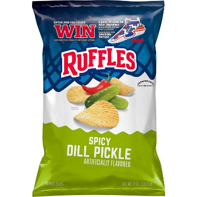 Ideal for those with adventurous palates, these pickle chips add a kick to hamburgers, sandwiches or as a side with grilled meats. If you're into canning, these spicy dill pickle chips are a must-try variation to the standard dill variety.