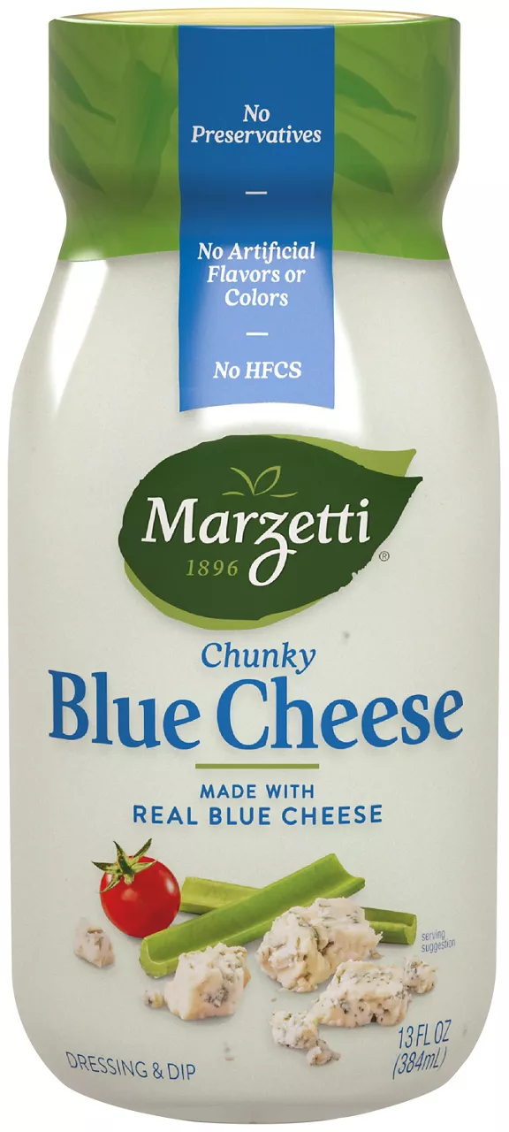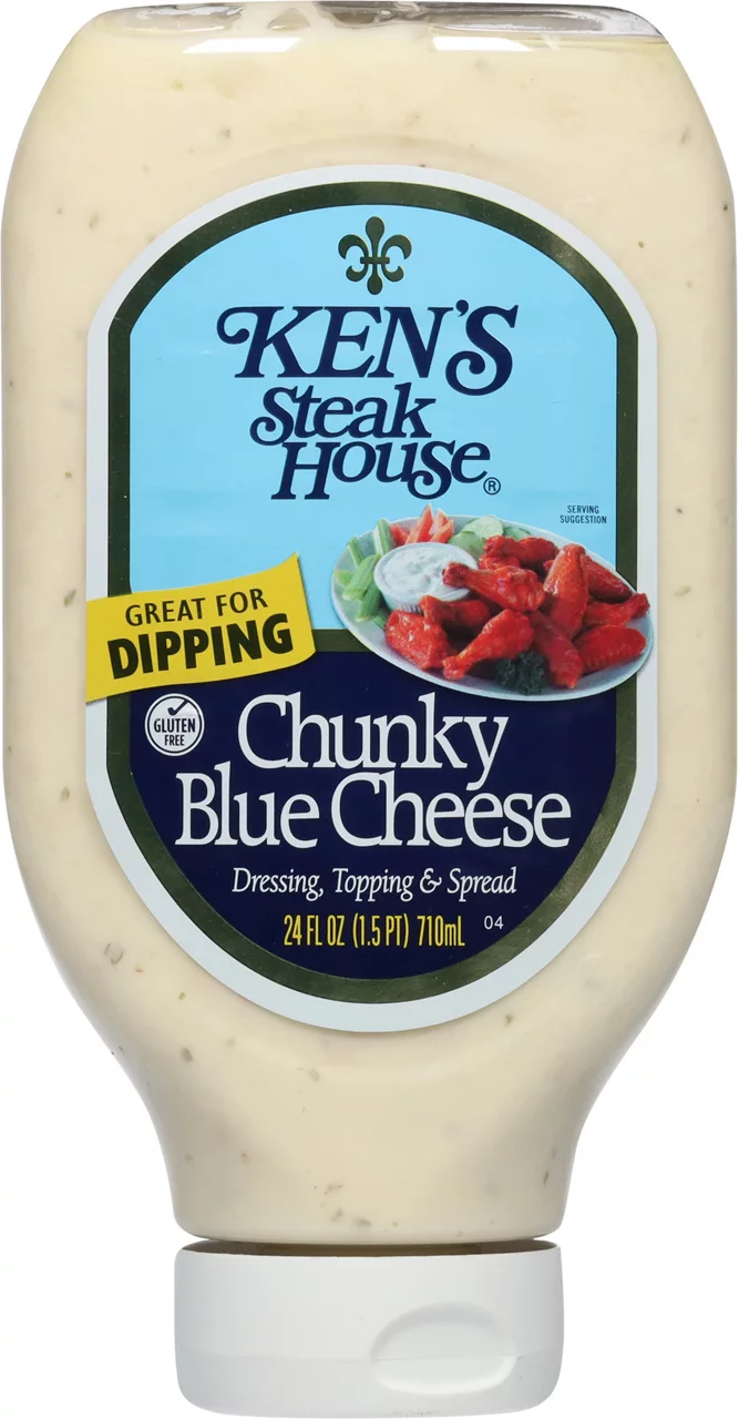 Blue cheese dressing is a popular, creamy salad dressing and dip featuring the distinct, pungent flavor of blue cheese. Known for its sharp, tangy taste, this dressing is made by combining crumbled blue cheese with ingredients such as mayonnaise, sour cream, buttermilk, garlic, and various herbs and spices. It pairs particularly well with robust, bold flavors, and is a favorite for dressing crisp salads, vegetable platters, or as a dipping sauce for Buffalo wings.