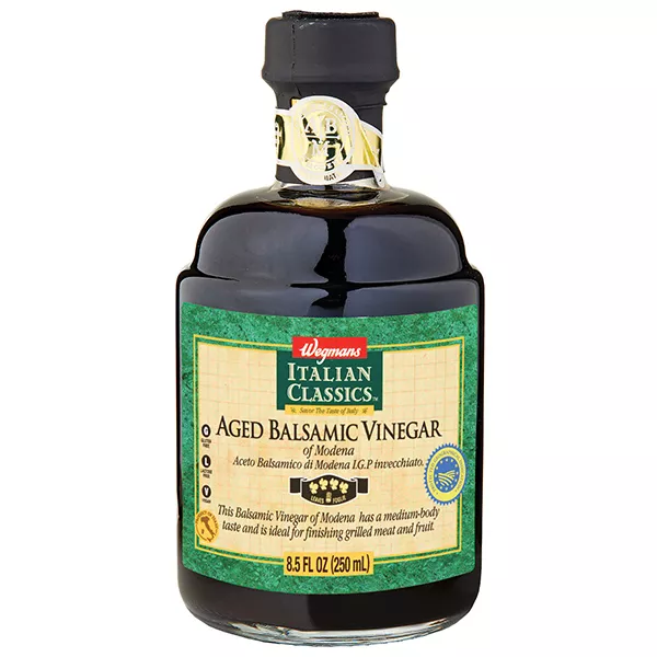 Balsamic vinegar is a dark, concentrated, and flavorful vinegar originating from Italy. Traditionally made from the cooked down juice of white grapes, particularly Trebbiano grapes, this versatile condiment is aged for several years in wood barrels to achieve its unique sweet and tangy taste. Authentic traditional balsamic vinegar, also known as Aceto Balsamico Tradizionale, can be aged for over 12 years, with some varieties aged for as long as 25 years or more.