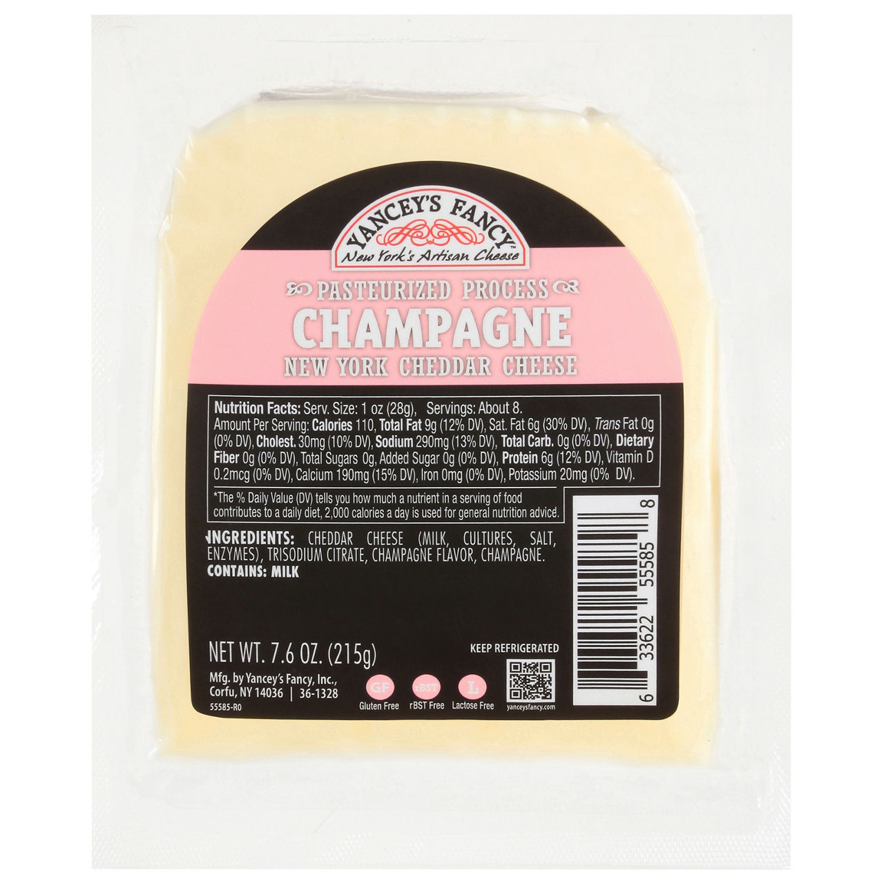Champagne Cheddar cheese is an upscale culinary delight, featuring a rich infusion of bubbly champagne into creamy, aged cheddar. This uniquely flavorful blend creates an artistic gesture in gourmet cheese making, bringing forth a harmony of tastes that subtly combines the sharp, robust nature of cheddar with the effervescence and dry sophistication of champagne.