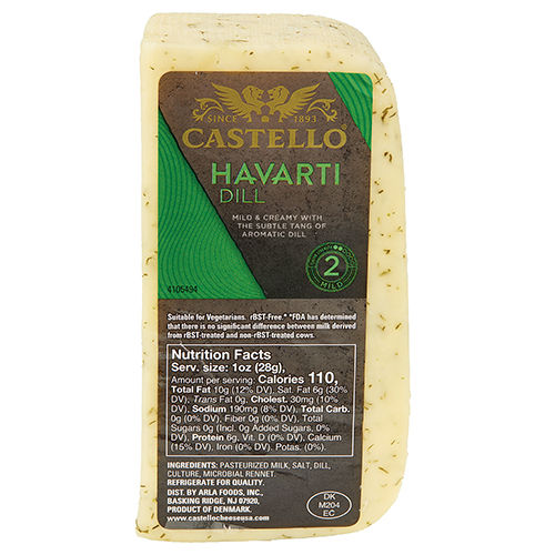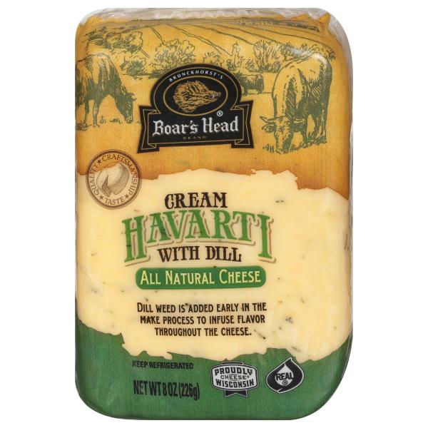 Made from cow's milk, Havarti turns real special with the addition of dill seasoning. The piquant dill mixes beautifully with the creamy texture, creating a unique balance of softness with completely approachable spiciness. This makes Dill Havarti a top choice for adding decadent layers to sandwiches, or simply to enhance a sophisticated cheese platter.