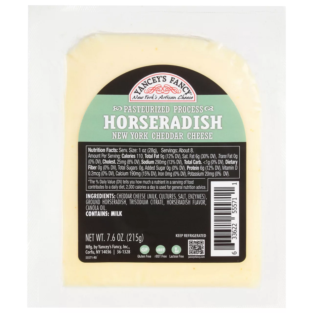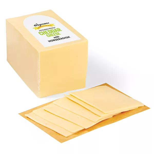 Ideal for adding spice and tang to sandwiches, crackers, or gourmet mac and cheese, the horseradish cheddar cheese enhances the flavor of any dish. The texture is creamy and easy to slice or melt, making it a versatile addition to any kitchen.