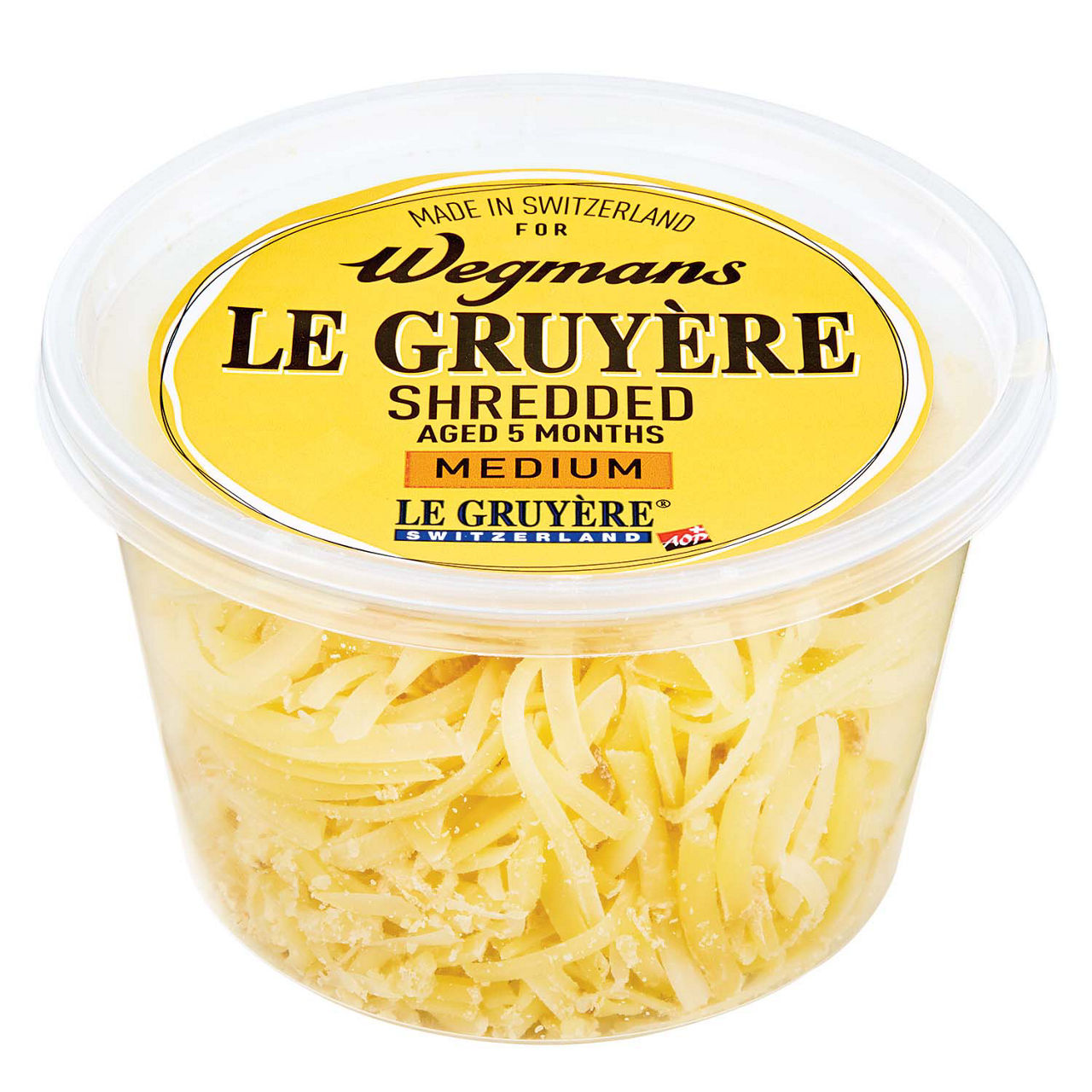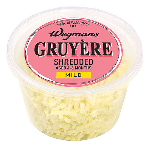 Gruyere, a renowned Swiss cheese, has undergone a process of shredding here to increase its accessibility and convenience. It offers a slightly nutty, sweet, and creamy flavor profile which can add depth of taste to any dish.