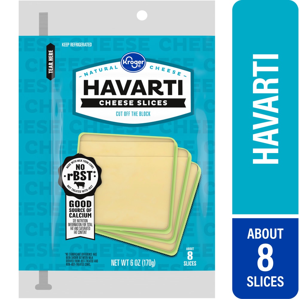 With its distinct, buttery taste and semi-soft texture, sliced Havarti cheese completes an array of snacks and meals. Exceedingly versatile, the Danish-born cheese features subtly sweet undertones and a mellow, creamy flavor that enhances sandwiches, wraps, and charcuterie boards.