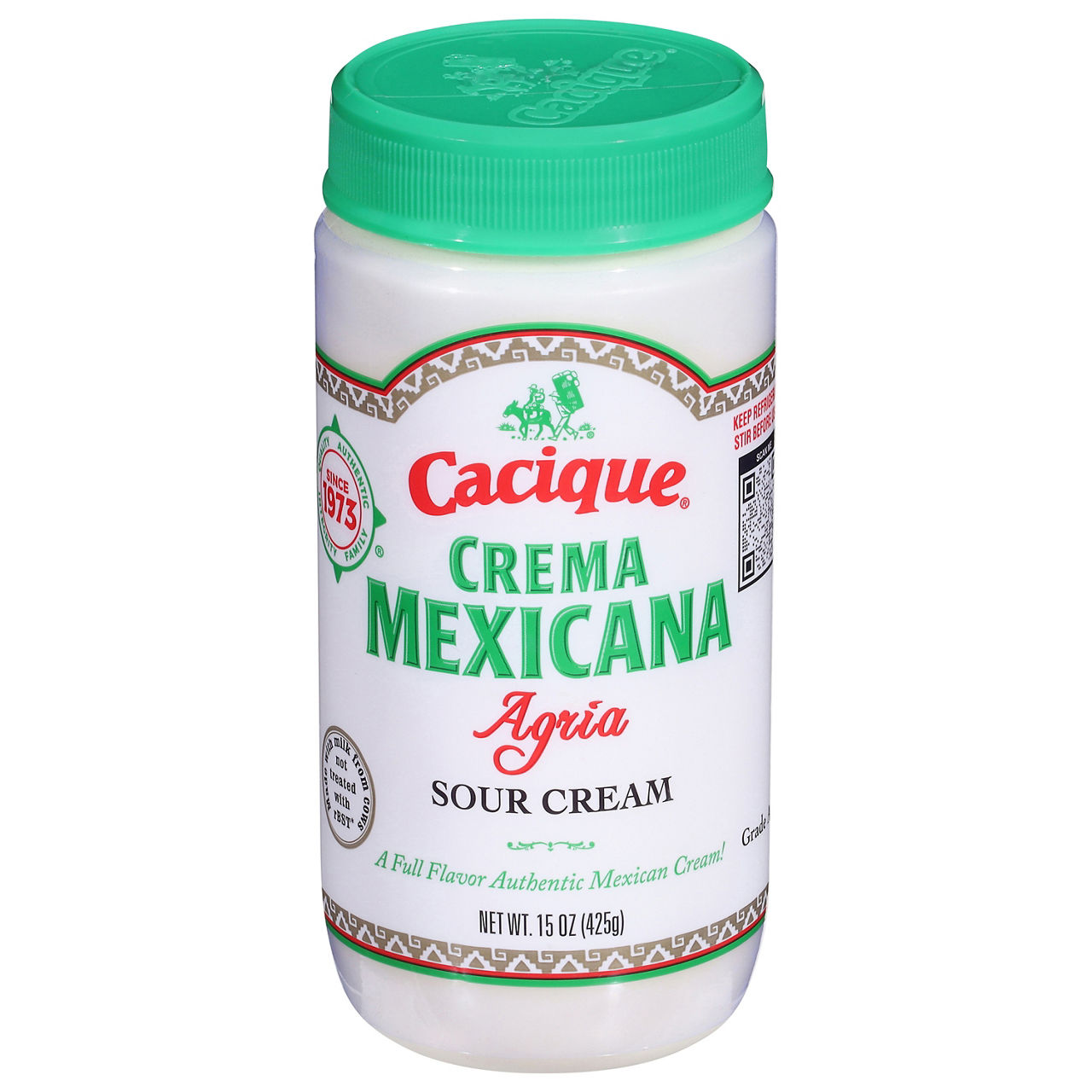 Mexican sour cream, also known as Crema, is a staple ingredient in many traditional Mexican recipes. Rich in taste with a slightly tangy hint, it is thicker and creamier than its American counterpart. This delightful cream can elevate any dish with its smooth and velvety texture.