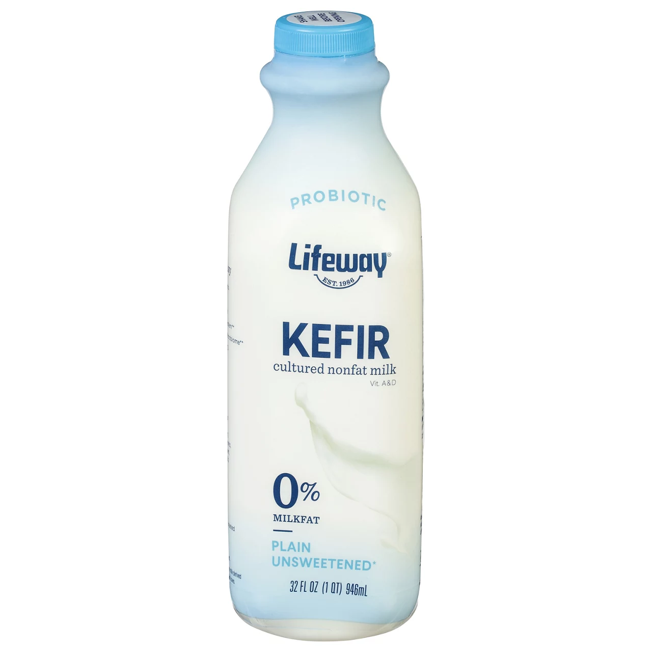 Nonfat plain kefir is a cultured, fermented milk drink, similar in taste and texture to a drinkable yogurt, but with distinct health benefits. It's made by adding kefir grains to milk, resulting in a rich, tangy beverage brimming with probiotics, which are known for supporting digestive health and boosting immunity. Nonfat versions offer all the benefits without the added fat, making it an excellent option for those monitoring their calorie intake. Ideal for smoothies, as a tangy addition to recipes, or enjoyed on its own, it's a versatile and health-forward choice for enhancing daily nutrition.