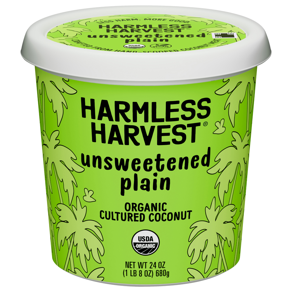 Unsweetened plain coconut milk yogurt offers an invigorating and flavorsome alternative to conventional dairies. Made from plant-derived coconut milk, it's a creamy and smooth delight with a slight natural sweetness and a subtle hint of coconut. It provides a unique twist on the yogurt menu for those embracing a vegan lifestyle or nourishing a lactose-intolerance.