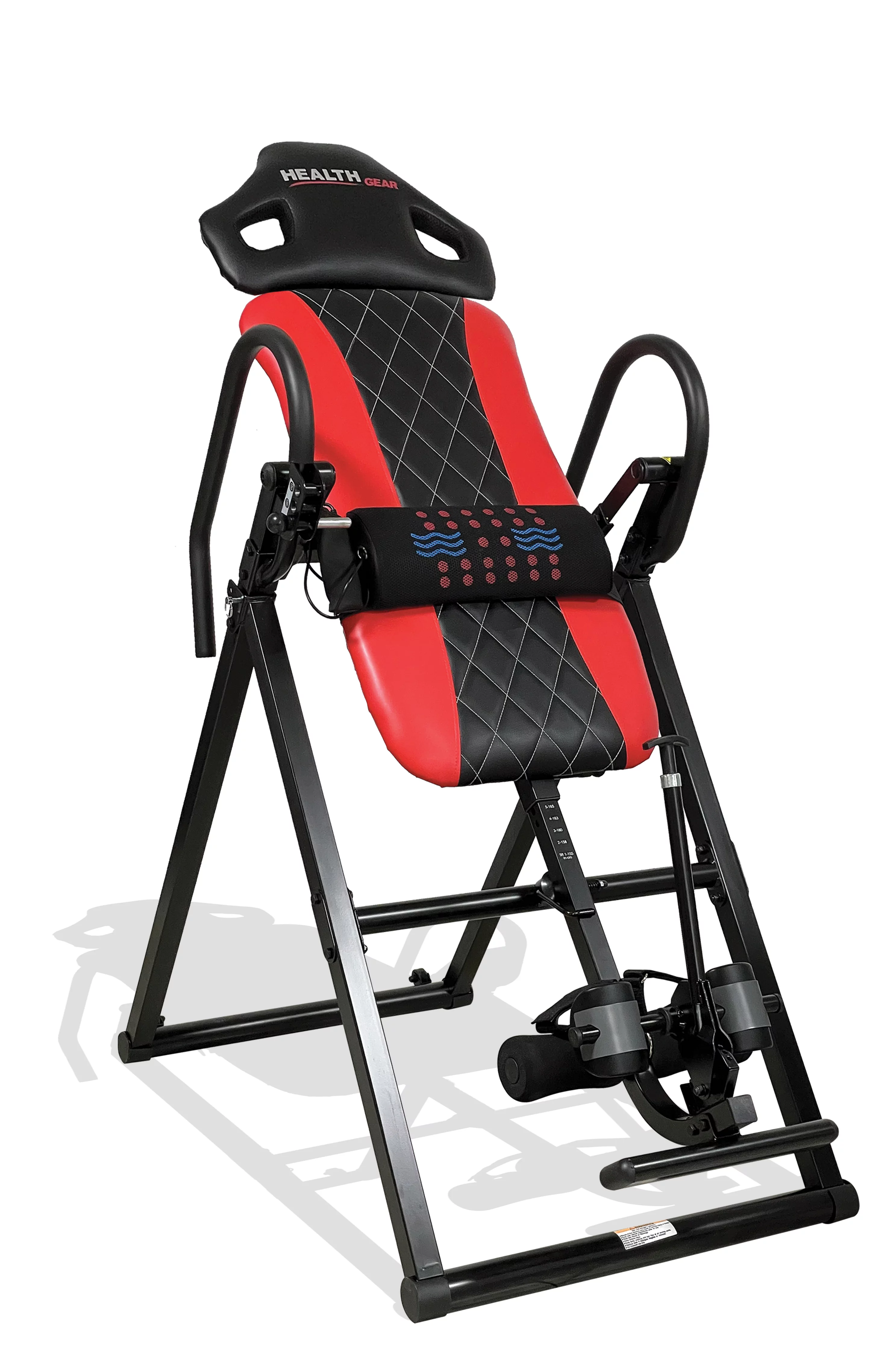 Health Gear Deluxe Back Soothing Heat and Vibration Massage Inversion Table, HGI 4.4RX, Red, 300lb Weight Capacity