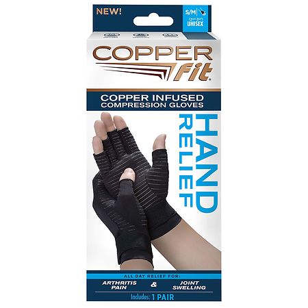 Copper Fit Work Gear Hand Relief Compression Gloves, Black, S/M