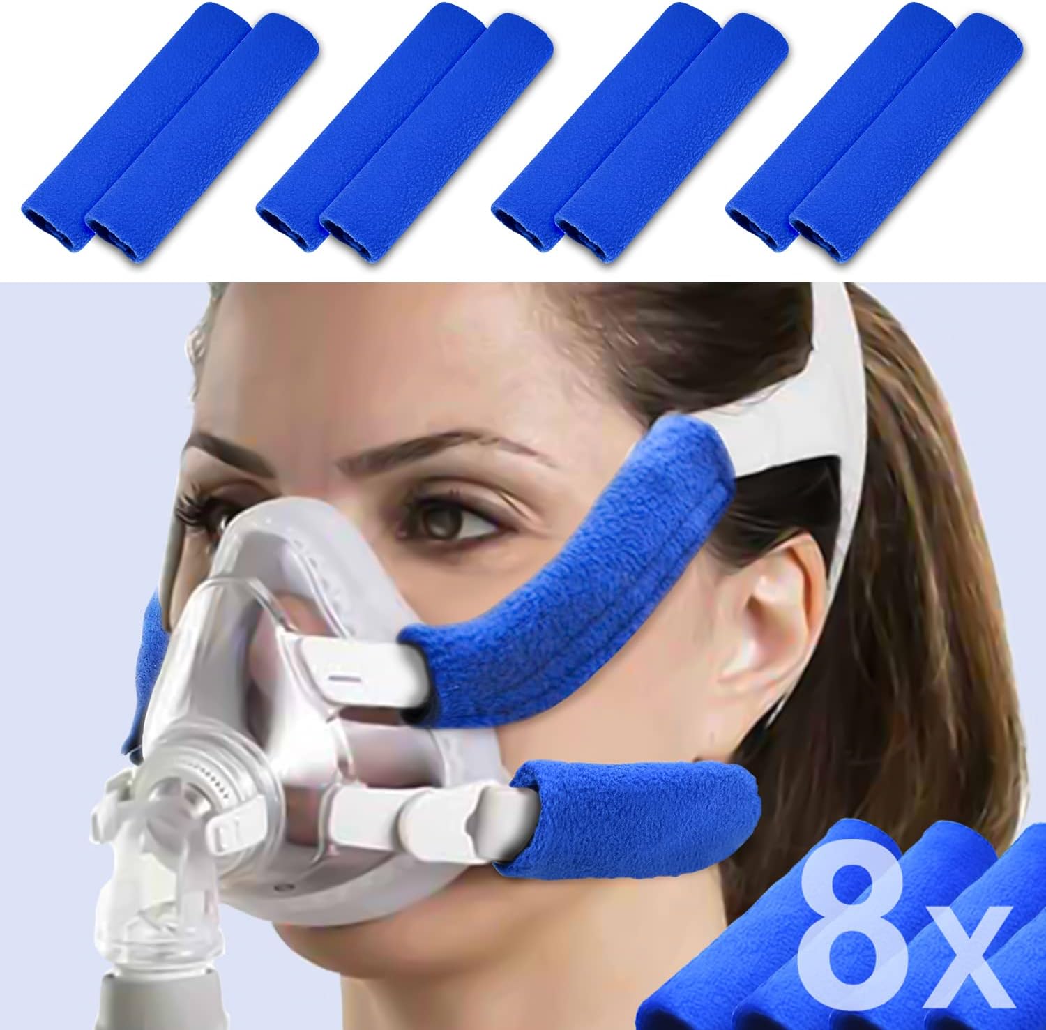 ResMed Airfit/AirTouch F20 Headgear - Replacement Headgear - Extra Soft with Plush Straps - Large, Blue
