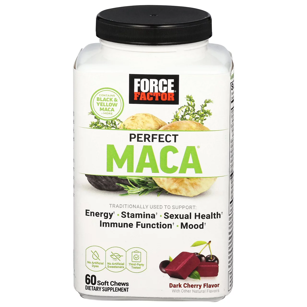 Force Factor Perfect Maca Maca Root And DIM Supplement With Saffron To Boost Energy And Mood With Yellow And Black Maca Vitamins Minerals And Antioxidants Dark Cherry Flavor 60 Soft Chews
