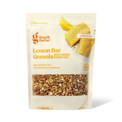 Lemon granola offers a zesty twist on a classic breakfast staple, combining the tangy brightness of lemon with the hearty crunch of traditional granola. It typically features rolled oats, nuts, and seeds, all clumped together with a hint of sweet and citrusy lemon flavoring. This delightful mix not only serves as an invigorating morning meal but can also be sprinkled over yogurt or incorporated into various desserts for a textural contrast and a burst of lemony zest, adding a fresh lift to your culinary creations.
