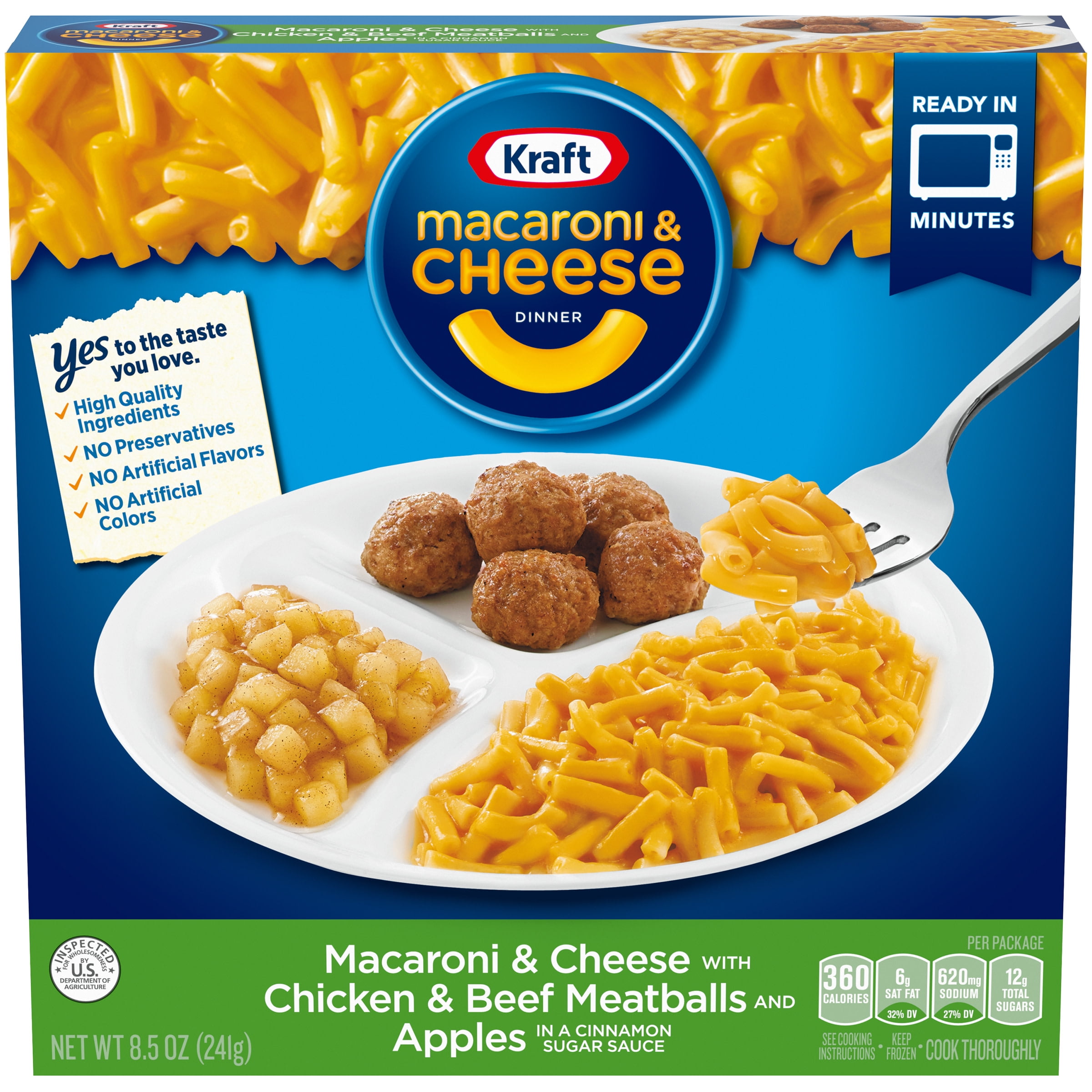 Kraft Macaroni & Cheese Frozen Dinner with Chicken & Beef Meatballs & Apples in a Cinnamon Sugar Sauce