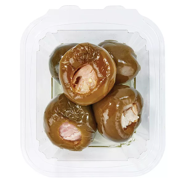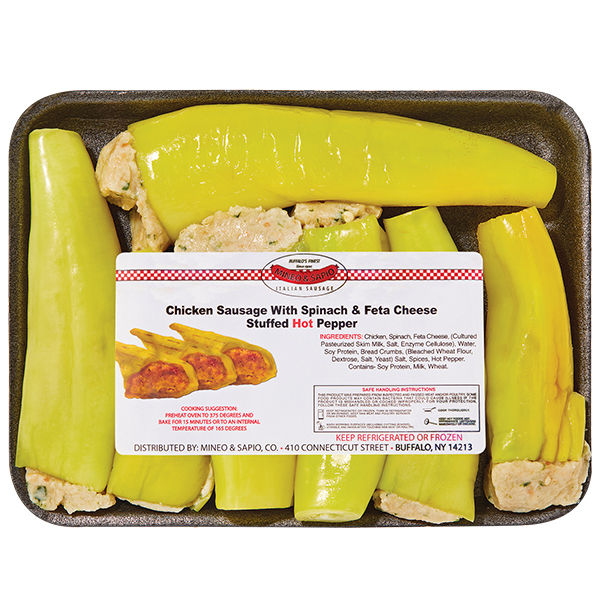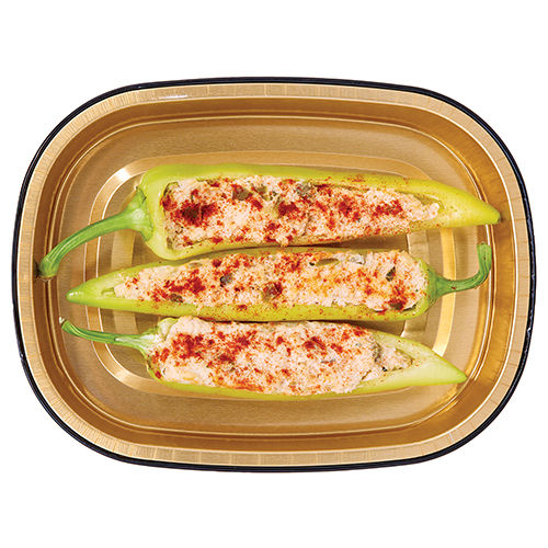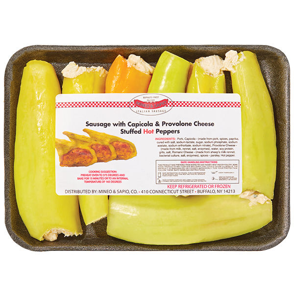 Stuffed hot peppers bring a delightful mix of sweet and spicy to any meal. These small hot peppers are typically filled with a savory mixture of cheese and seasonings also sometimes including other ingredients like sausage, providing a creamy contrast to the peppers mild heat. They are perfect for serving as an appetizer or a side dish, adding a pop of color and flavor that complements a variety of main courses. Simply heat them up and enjoy the blend of flavors that make these peppers a popular choice for easy, yet impressive, dining options.