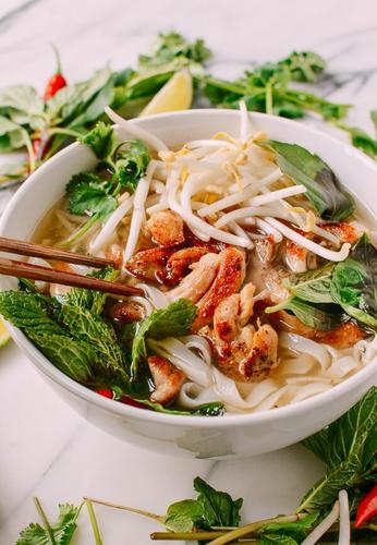Topped with fresh herbs, bean sprouts, and lime, chicken pho offers a customizable and refreshing meal experience. It's perfect for those who enjoy layers of flavors and textures in their dishes. Enjoy it as a wholesome and nourishing dinner, or as a way to soothe a cold day with its comforting warmth.
