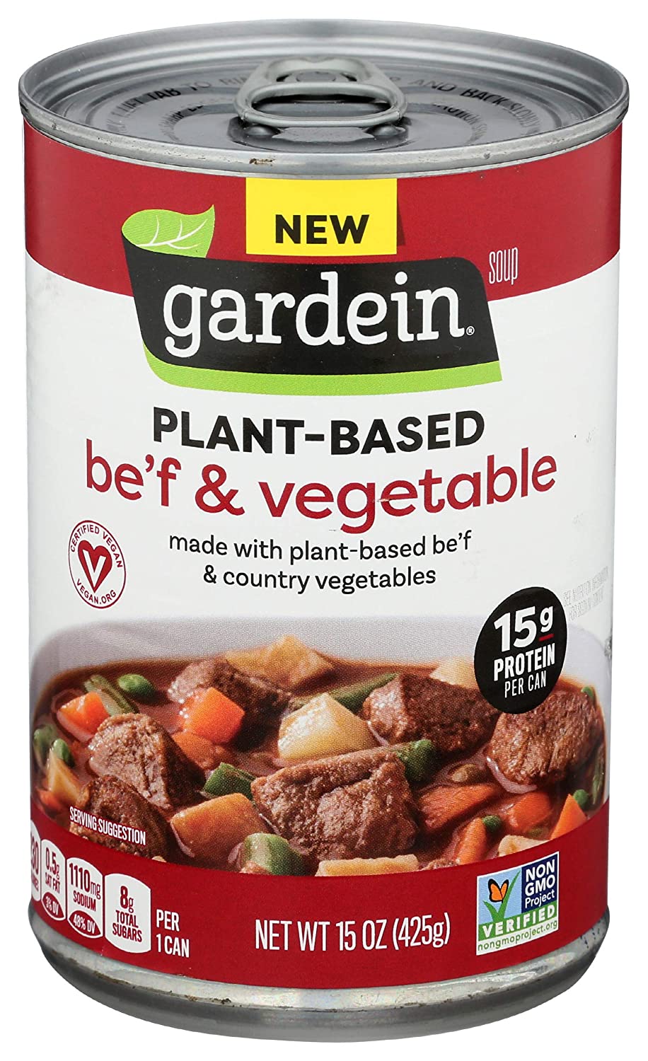 From carrots and peas to tender chunks mimicking real beef, this soup is a fulfilling meal that doesn't compromise taste or texture. It's a warm and comforting sensation that's ready to serve right out of the can, making it a convenient and nutritious option for dinner on any given day.