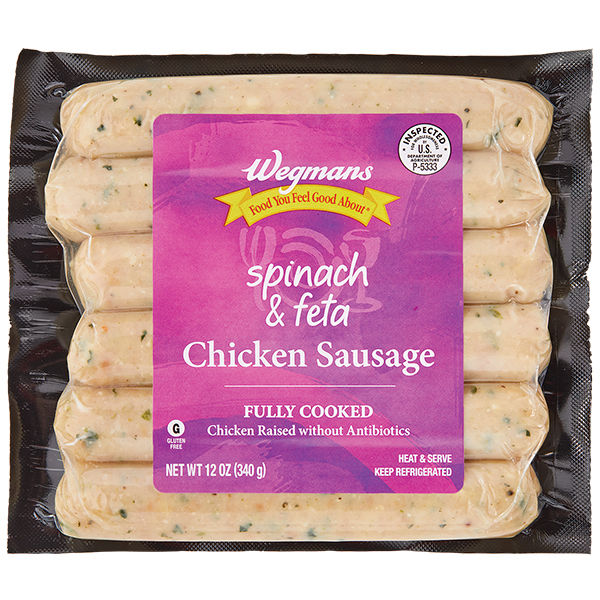 Spinach feta chicken sausage offers a splendid blend of flavors, with classic, savory sausage profile punctuated by the tangy hint of feta cheese and the fresh notes of spinach. Packed with lean protein from the chicken, it's a healthier alternative to traditional pork sausages, exhibiting largely similar textural characteristics and succulent juiciness.