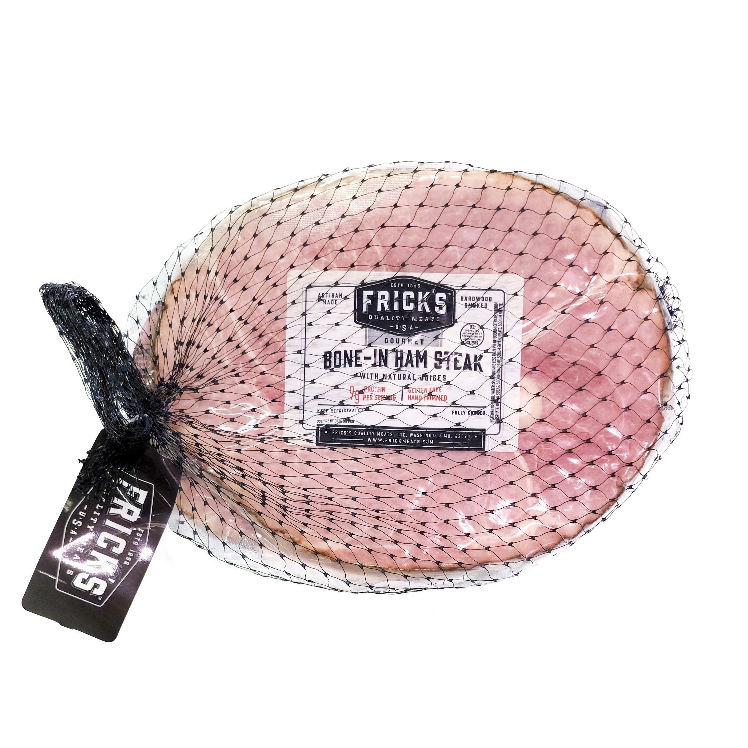 Bone-in ham steak is a rich, flavorful cut of pork that stands out for its versatility and quick cooking time. Usually served in thick slices, this selection boasts a delightful, smoky flavor that enhances any meal, and the bone in the center adds depth and character to the cut.