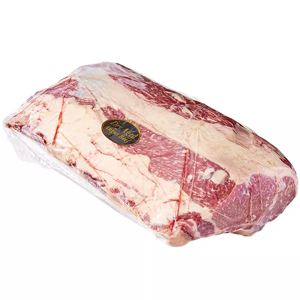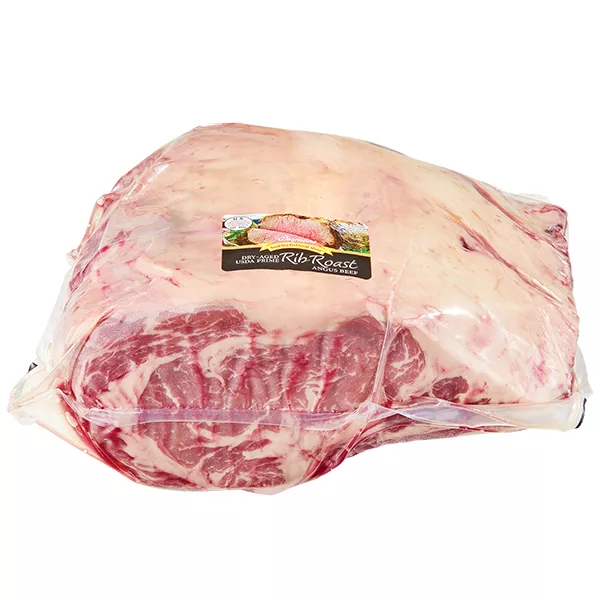 Dry-aged rib roast is a prime example of what well-nourished, premium beef should look and taste like. It features a deep, robust flavor enriched over time, a result of the dry-aging process, which significantly enhances its tenderness and taste, making it a wonderful choice for those seeking a high-quality cut of beef.
