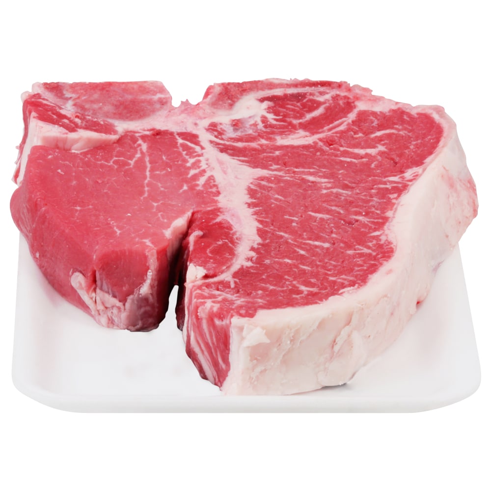 Porterhouse Steak, the king of T-bones, is a generously-sized cut that offers the best of both worlds. One one side of the T-shaped bone you find a succulent tenderloin, and on the other, a robust and flavorful strip steak. This makes it a favorite among steak lovers for its dual texture and flavors.
