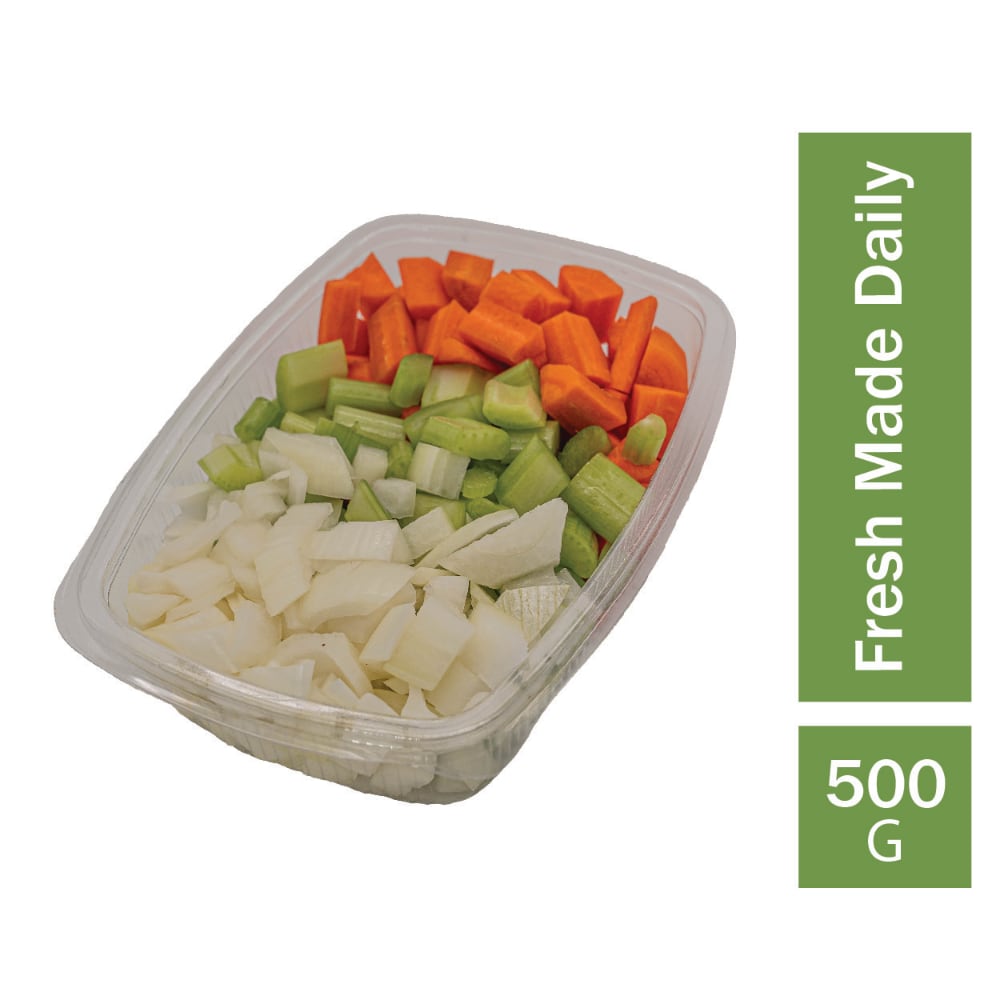 Soup Vegetables are colorful medley of fresh vegetables, commonly found in soups. These diverse mixes can include elements like celery, onion, carrots, tomatoes, zucchini, and bell peppers. A flavorful blend, it is highly nutritious and satisfies the senses with its enticing smell, vibrant colors, and diverse textures.