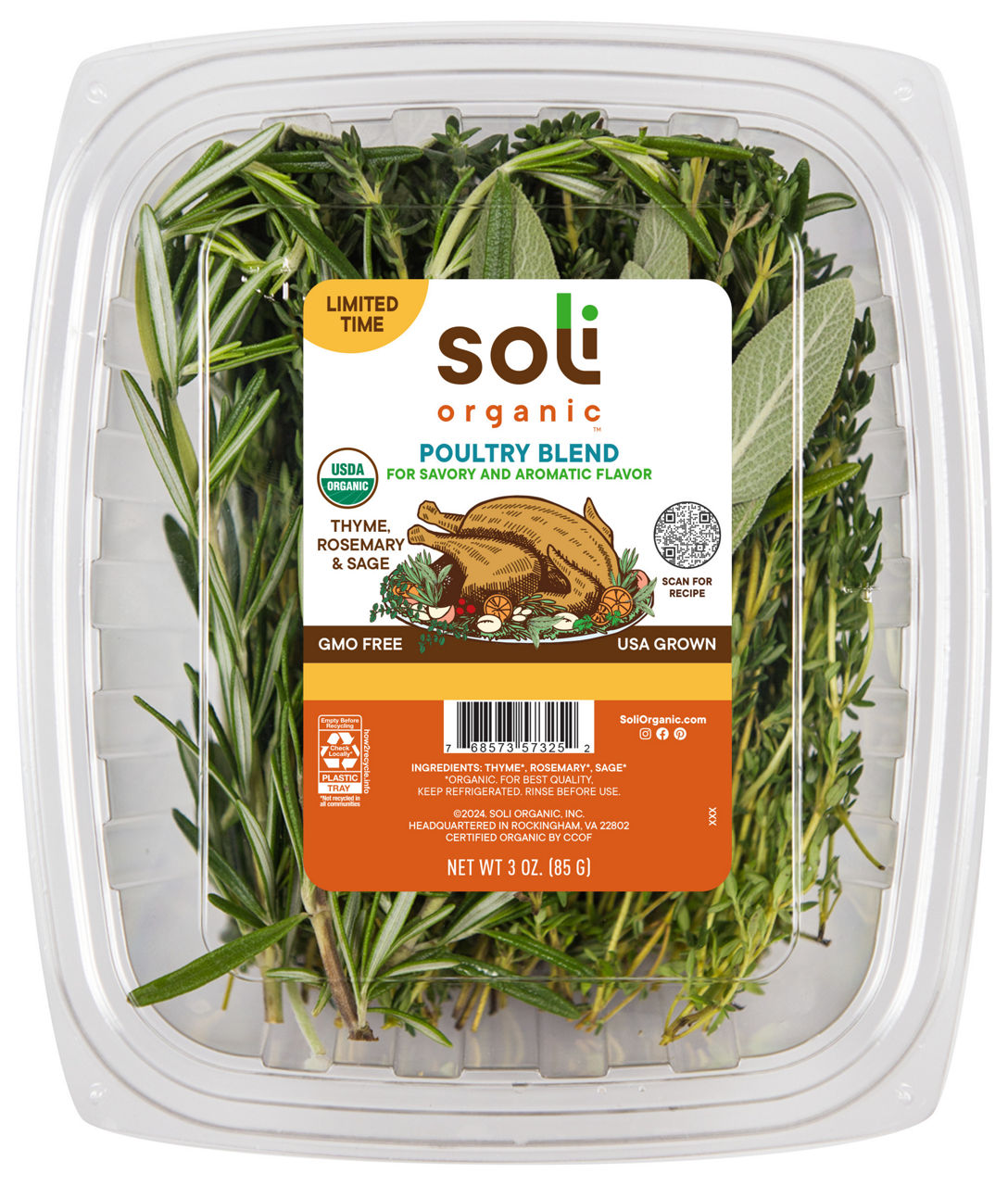 Poultry Herb is a robust mix of herbs, typically composed of rosemary, sage, and thyme. This aromatic trio complements the flavors of chicken and turkey effortlessly, enhancing dishes with their distinctly warm and earthy notes. Fresh Poultry Herb is most commonly used as a rub to prepare a roast, yielding tender and flavor-packed meat.