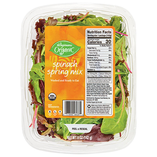 Spinach spring mix, also know as 50/50 Spinach & Spring Mix, is a colourful combination of tender baby spinach, and other spring or baby greens. These leafy greens are bursting with nutrient diversity, packing in vitamins A, C, and K, along with several necessary minerals. Spinach spring mix is a blend of spinach and typically varieties such as baby red and green lettuces, arugula, chard, endive, radicchio, and other heirloom lettuces.