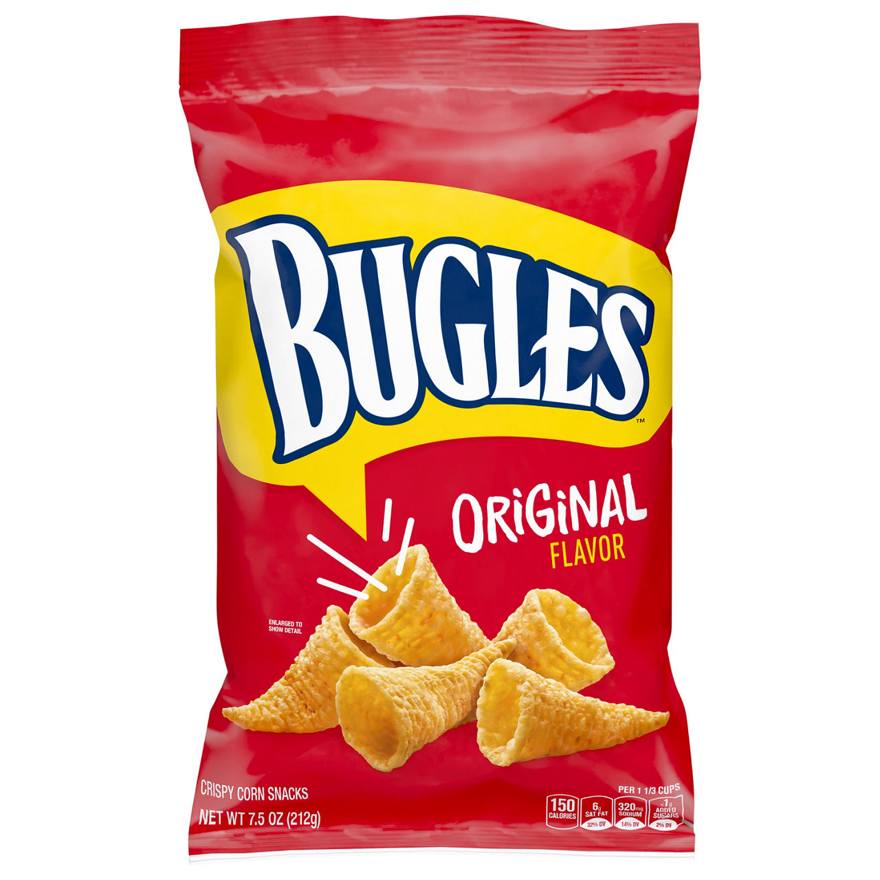 Original-flavored Bugles pack a simple, clean taste, striking a balance between savory and corn-enriched goodness. Perfect for munching on during a movie, a road trip, or along with your midday sandwich, Bugles can cater to any snack craving, providing a mouthful of crunch in every bite.