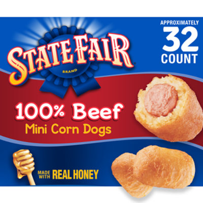The Beef Corn Dog is a delightful fusion of savory beef frankfurter and sweet cornbread batter, conveniently packaged on a stick for a mess-free experience. Residing in the frozen section, this classic snack readily waits to transport you back to the joys of county fairs with its simple, yet satisfying flavor.