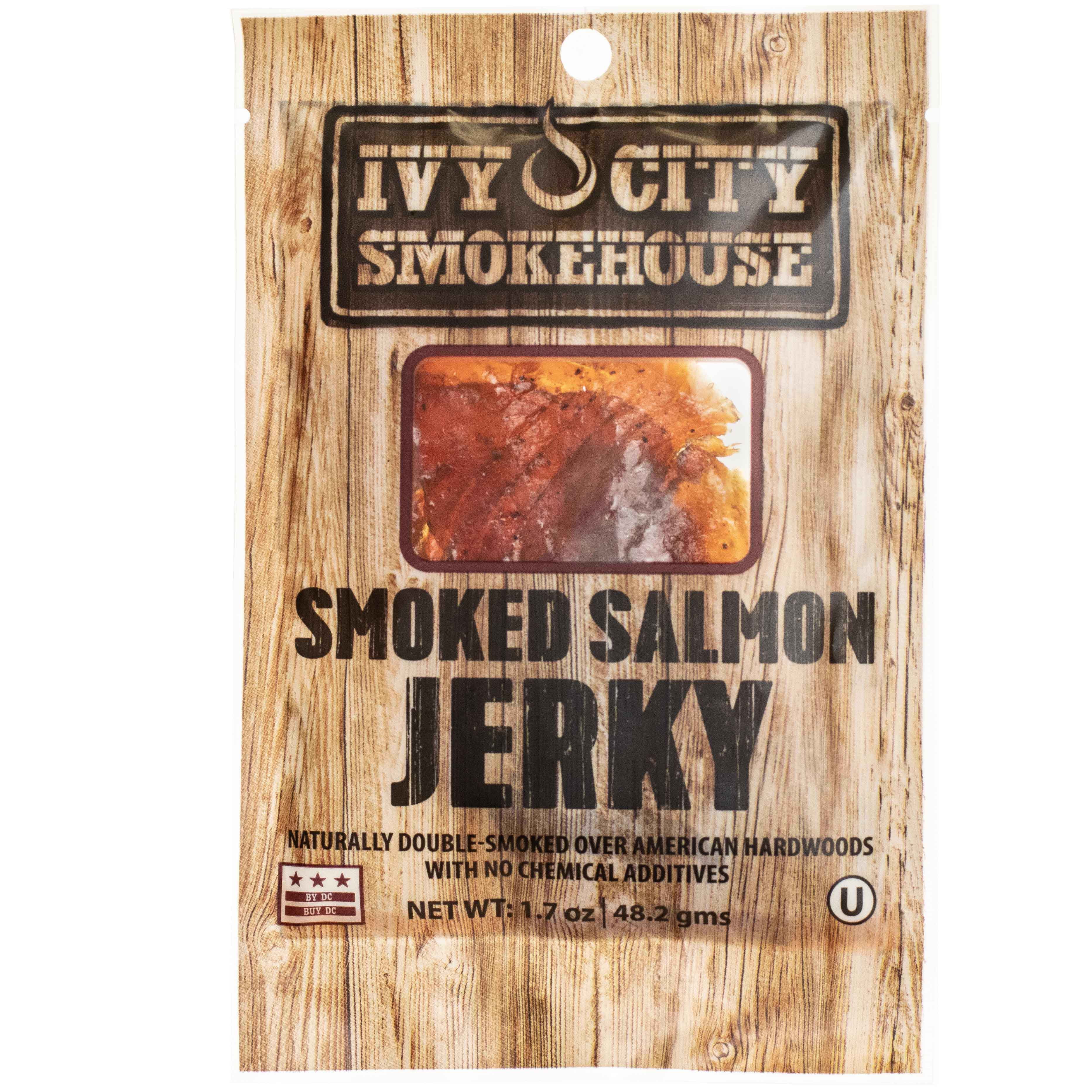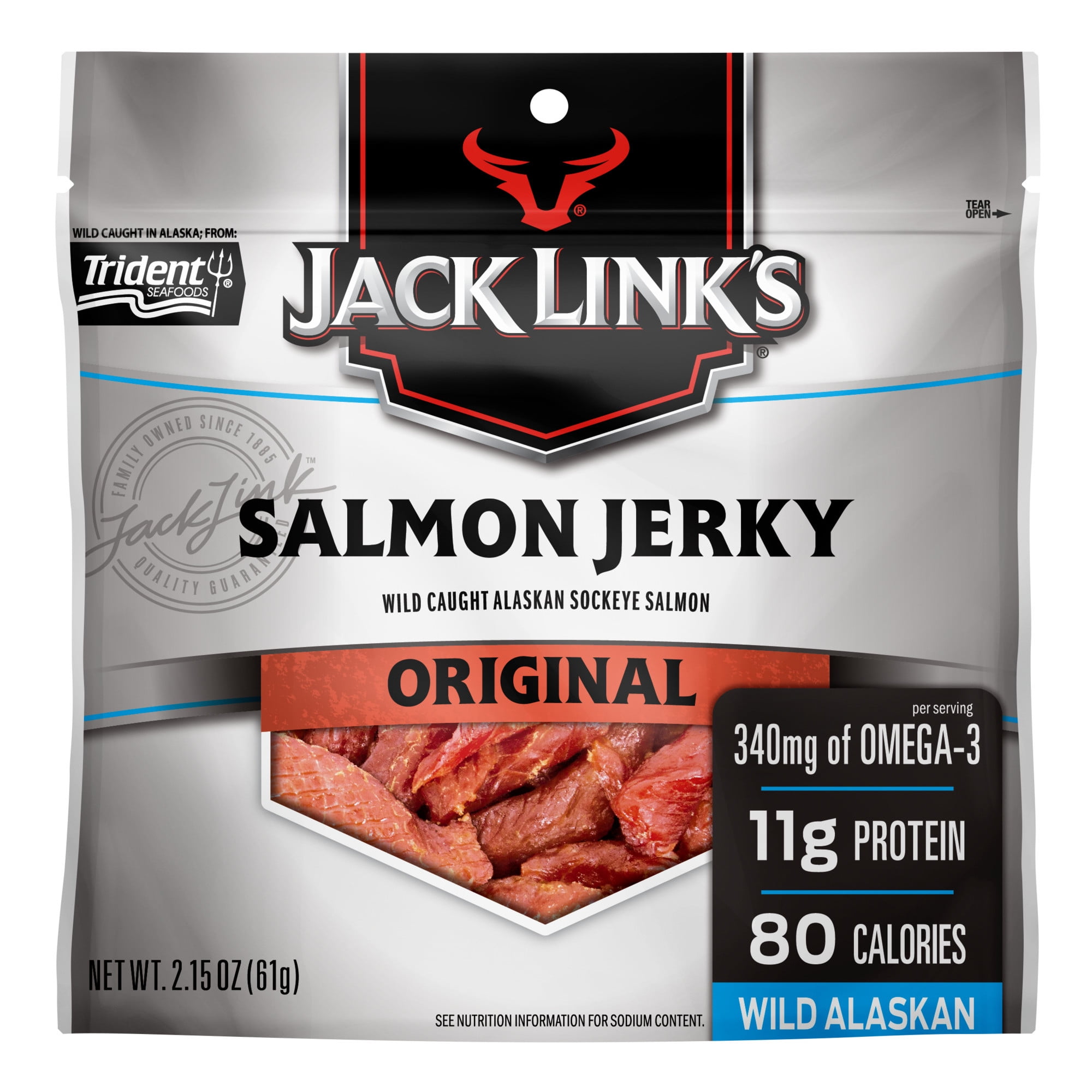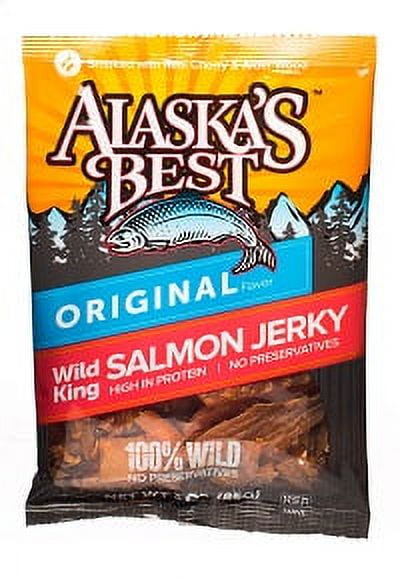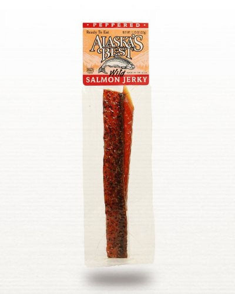 Salmon jerky is a delectable treat made from marinated salmon that's been slowly dried to achieve a chewy, intensely flavored snack. Available in a variety of flavors, it's a nutritious, packable protein source high in omega-3 fatty acids, making it a healthy alternative to traditional beef or pork varieties.