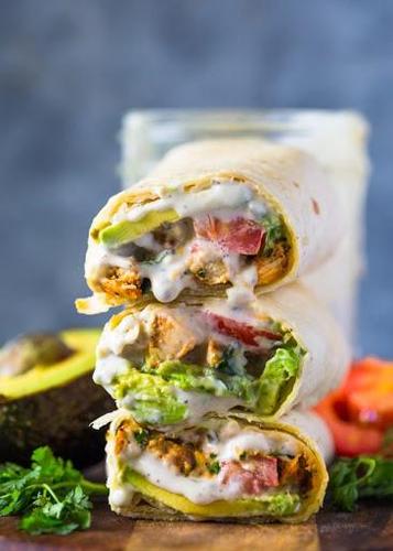 Air Fryer Southwest Chicken Burritos are flour tortillas filled with shredded chicken, cream cheese, cheddar cheese, vegetables, taco seasoning, and fresh pico de gallo.