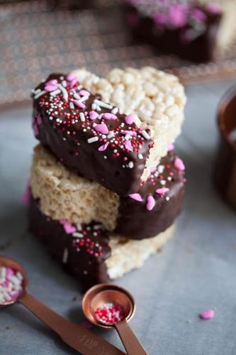 Chocolate Dipped Heart Rice Krispies Treats