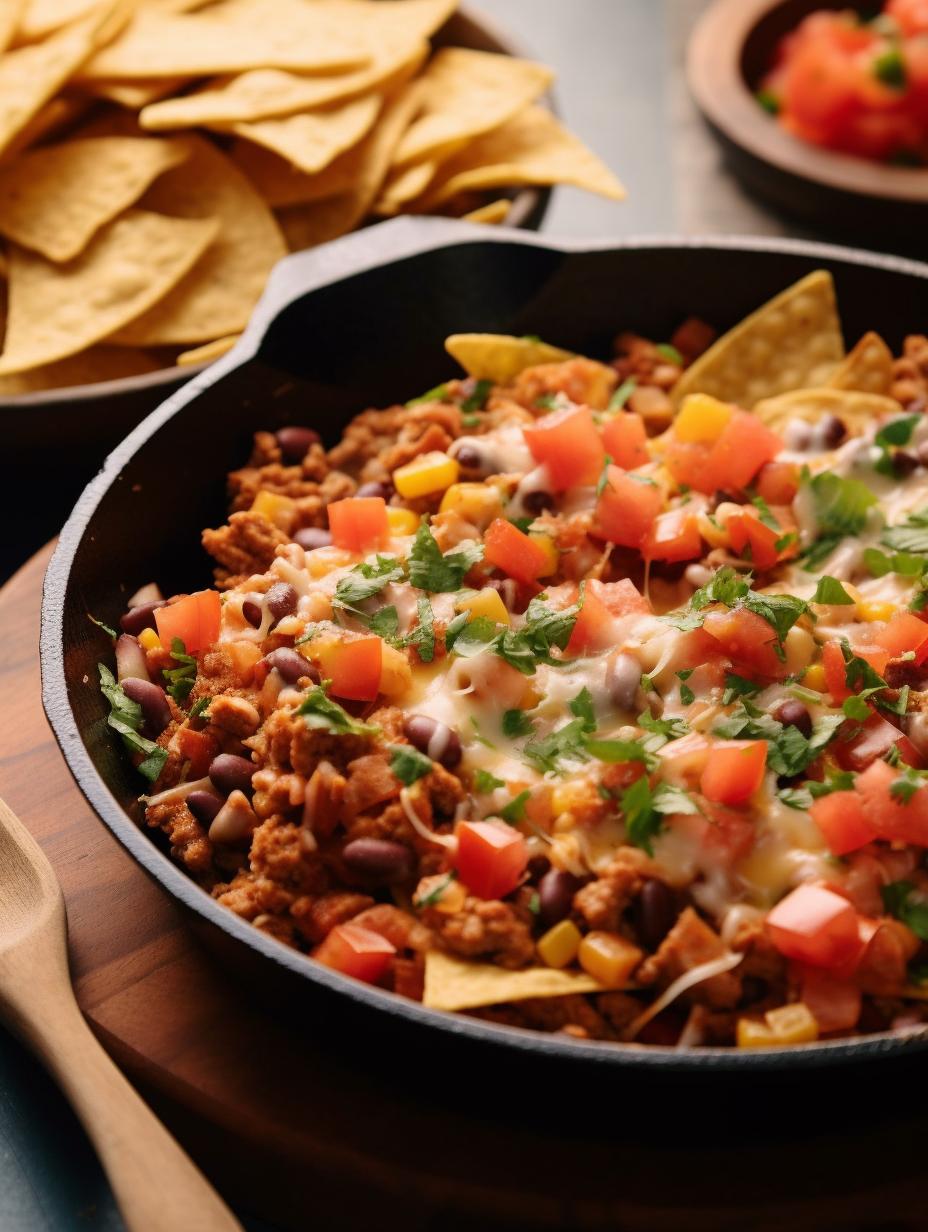Garnish the skillet with pico de gallo and chopped cilantro before serving.