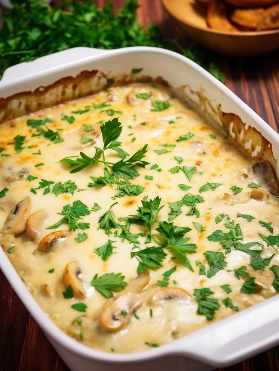 Indulge in a delightful and easy to make Cheesy Chicken and Mushroom Bake, perfect for weeknight dinners. This creamy casserole is brimming with tender chicken, savory mushrooms, and gooey cheese, ready to be devoured in just an hour.