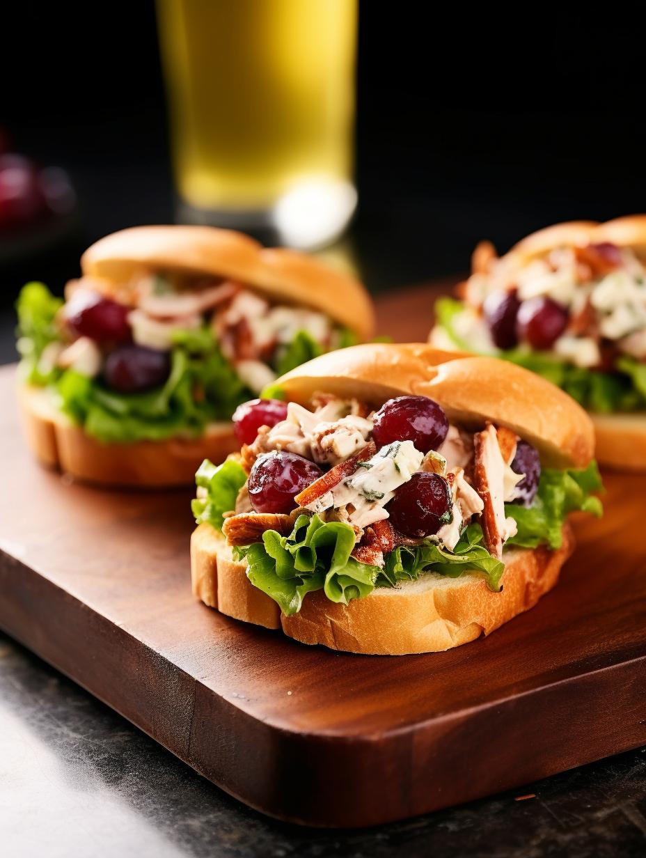 This refined Chicken Salad Sandwich recipe offers a delightful spin on the original. Made with juicy rotisserie chicken, fresh celery, succulent red grapes, sweet dried cranberries and the perfect crunch from sliced almonds, this chicken salad brings flavor and texture to the forefront. It is dresse...