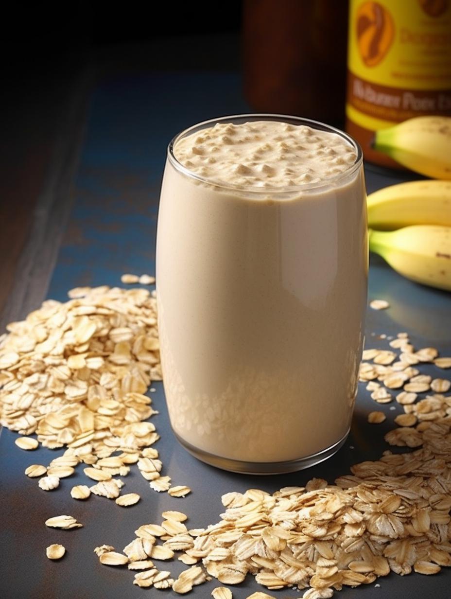 A delicious and creamy breakfast smoothie packed with banana, oats, and a swirl of nut or seed butter – perfect for a healthy and energizing start to your day.
