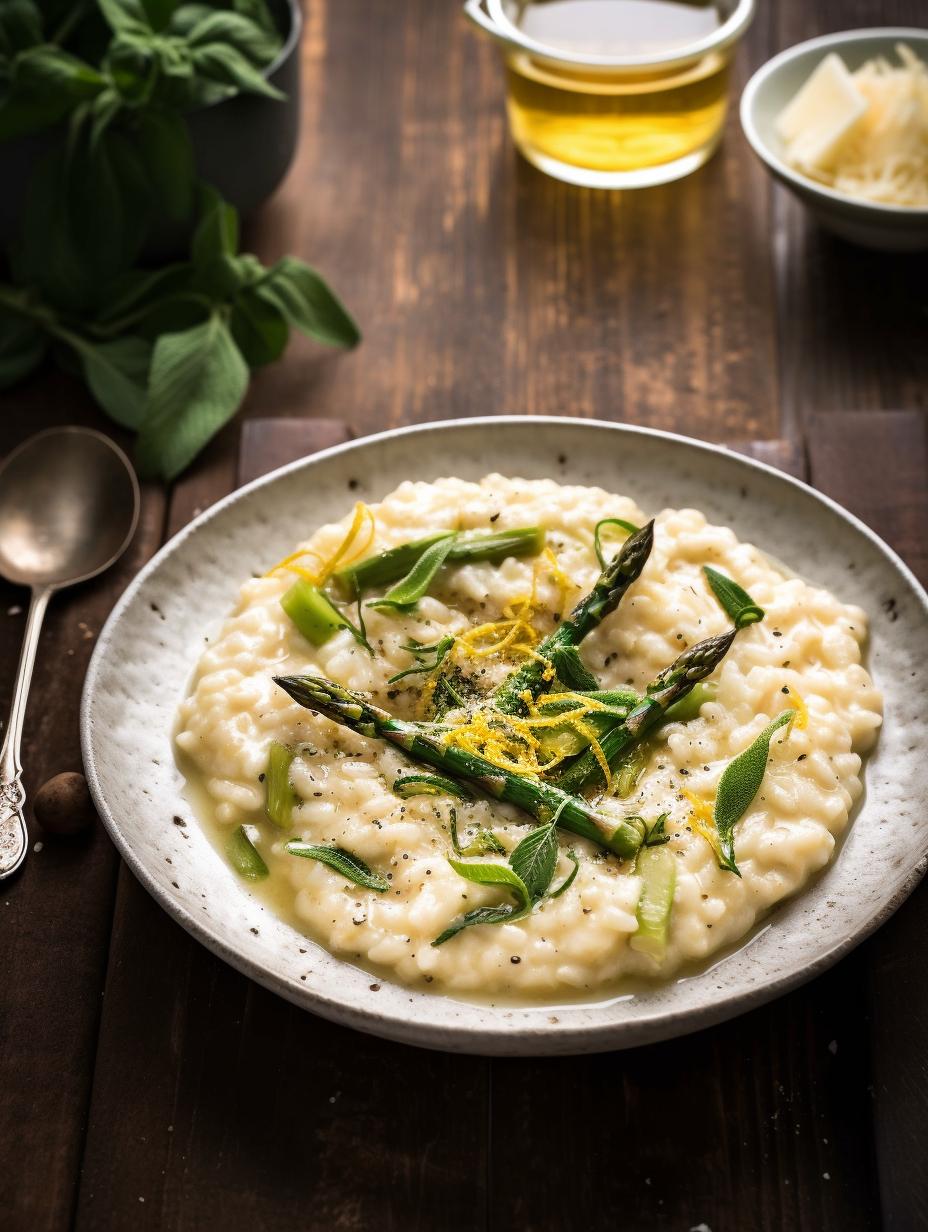 Ease into the delightful union of creamy brie risotto accompanied by a topping of asparagus sautéed in lemon butter. Filled with refreshing flavors, this dish is a delightful twist to traditional risotto recipes. Experience a meal that elevates pantry staples to an elegant dining experience.