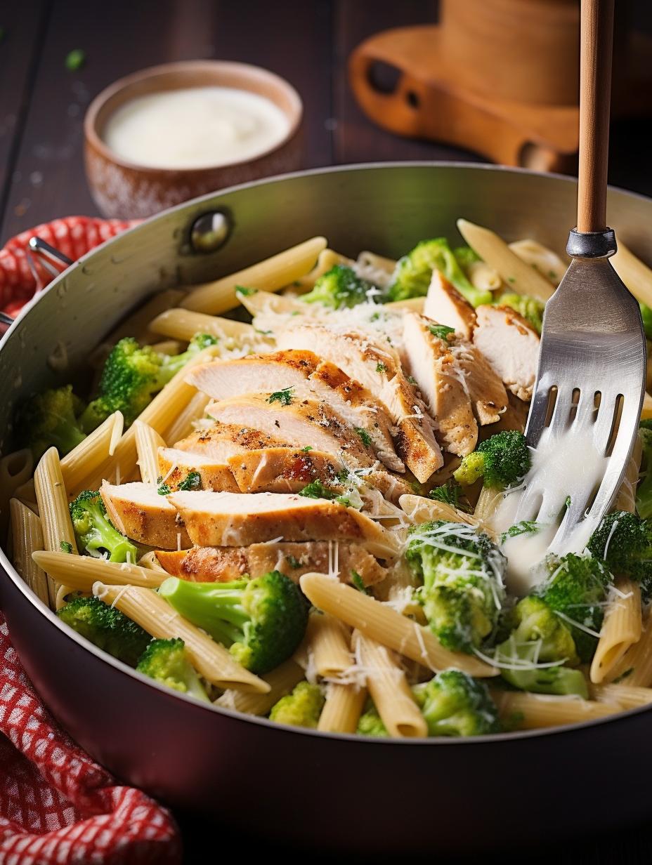 Easy to make and packed full of flavor, this Creamy Chicken Broccoli Penne is a surefire winner. Succulent chicken morsels, perfectly cooked penne pasta, and crispy broccoli all tossed in a decadently creamy mozzarella sauce will make this dish a family favorite.