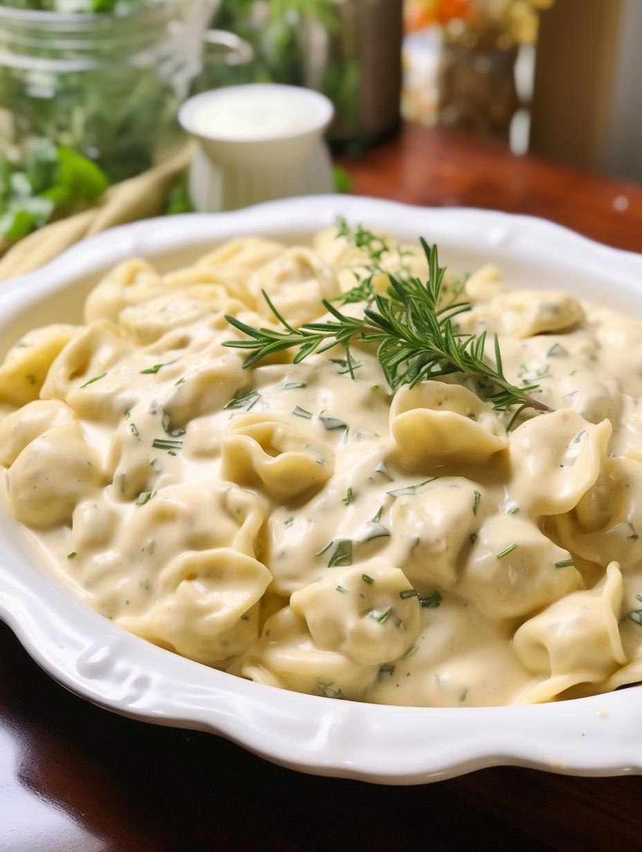 Fold in the cooked tortellini into the sauce, gently stirring until the pasta is evenly coated.